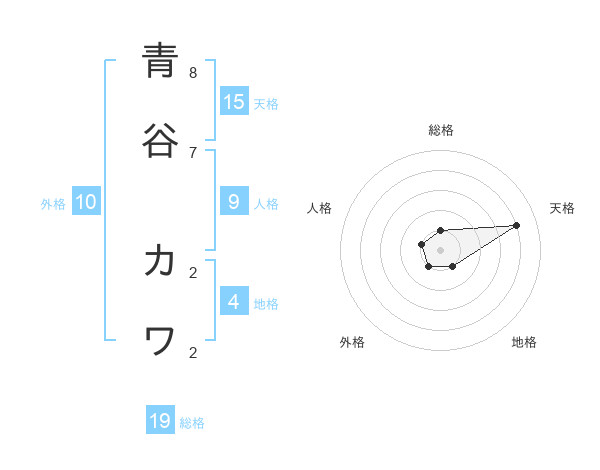 青谷 カワさんの天格は15画の4点!