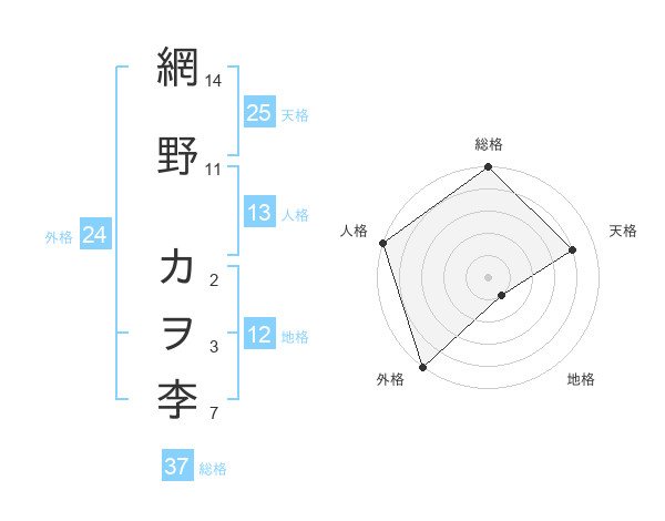 網野 カヲ李さんを姓名の画数から五運を鑑定