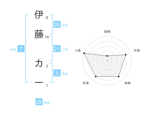 伊藤 カーさんの総格は28画の1点!