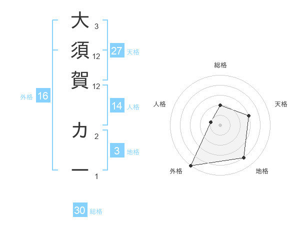 大須賀 カーさんの地格は3画の4点!