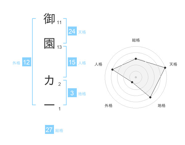 御園 カーさんの天格は24画の5点!