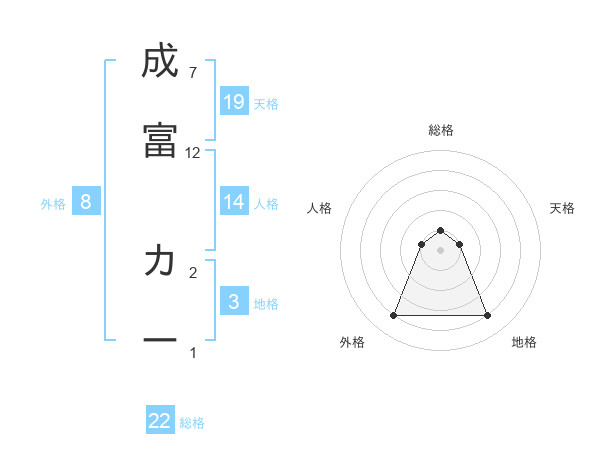 成富 カーさんの総格は22画の1点!