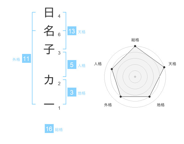 日名子 カーさんの総格は16画の5点!