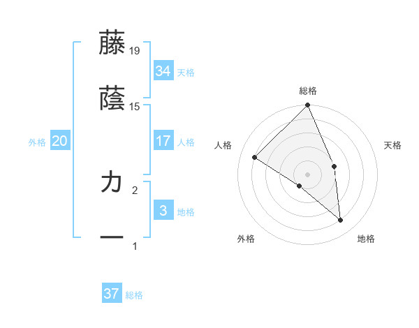 藤蔭 カーさんの天格は34画の2点!