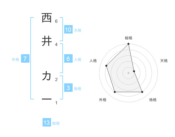 西井 カーさんの総格は13画の5点!