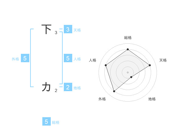 下 カさんの総格は5画の4点!