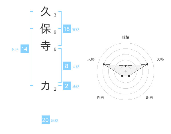 久保寺 カさんの総格は20画の1点!