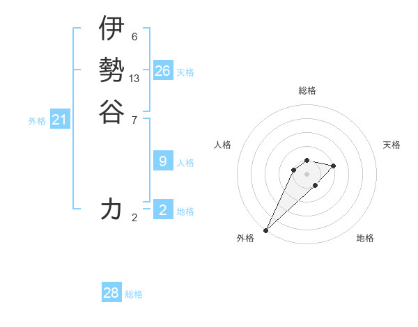 伊勢谷 カさんの総格は28画の1点!