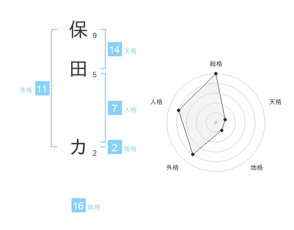 保田 カさんの外格は11画の4点!