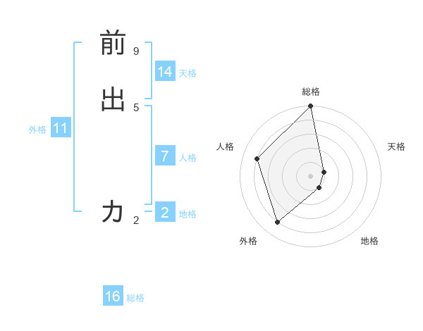 前出 カさんの総格は16画の5点!