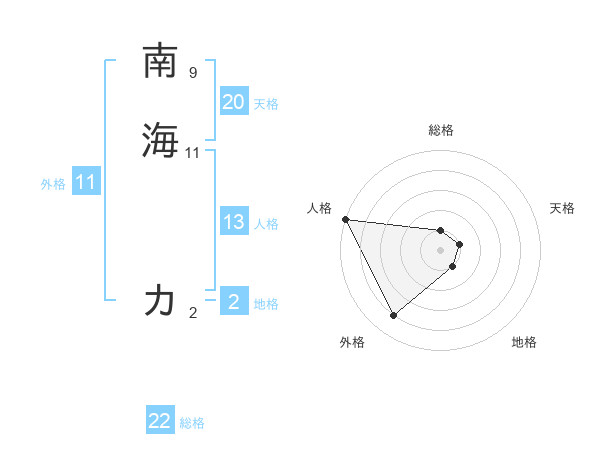 南海 カさんの総格は22画の1点!
