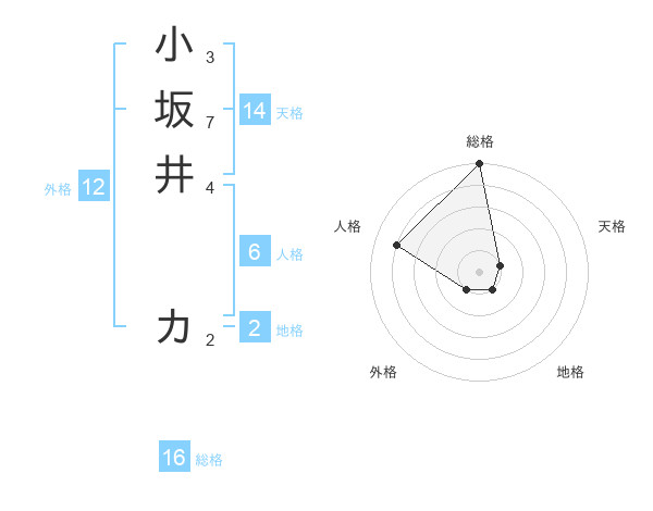 小坂井 カさんの総格は16画の5点!