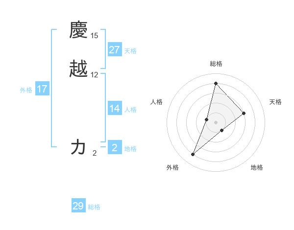 家系が持つ宿命的な運勢を表します。祖先から受け継いだ苗字ですので自分の力が及びません。家柄を象徴します。
