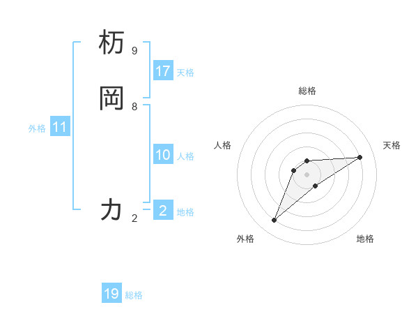 杤岡 カさんの総格は19画の1点!