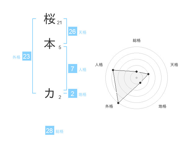 桜本 カさんの外格は23画の5点!