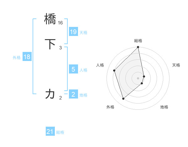 橋下 カさんの総格は21画の5点!
