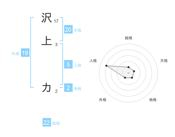 沢上 カさんの総格は22画の1点!