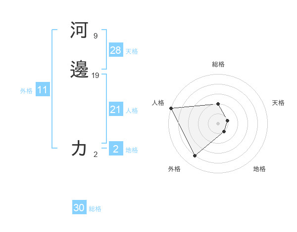 河邊 カさんの人格は21画の5点!