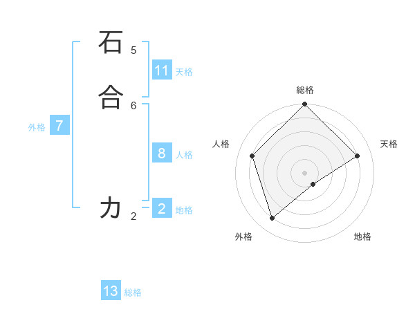 石合 カさんの総格は13画の5点!