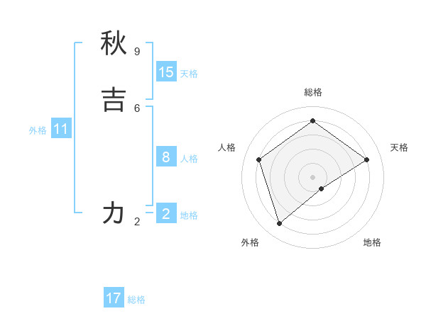秋吉 カさんの総格は17画の4点!