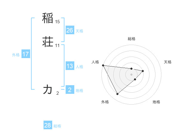 稲荘 カさんの天格は26画の2点!