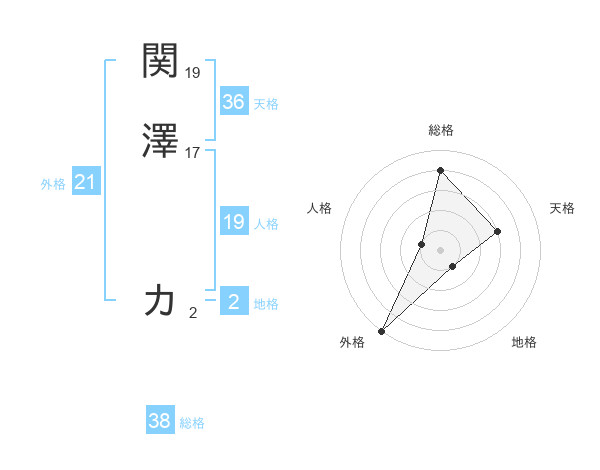 関澤 カさんの総格は38画の4点!