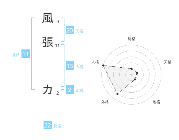 風張 カさんの総格は22画の1点!