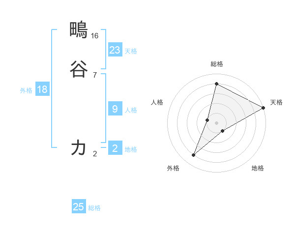 鴫谷 カさんの総格は25画の4点!