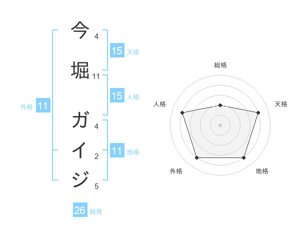 今堀 ガイジさんを姓名の画数から五運を鑑定