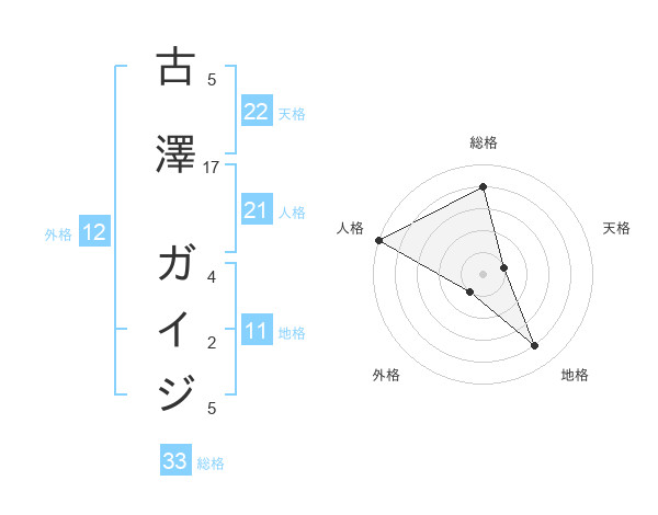 古澤 ガイジさんの地格は11画の4点!
