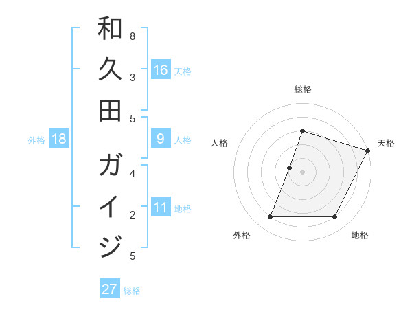 和久田 ガイジさんを姓名の画数から五運を鑑定