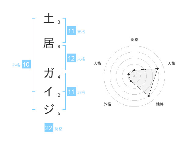 土居 ガイジさんの総格は22画の1点!