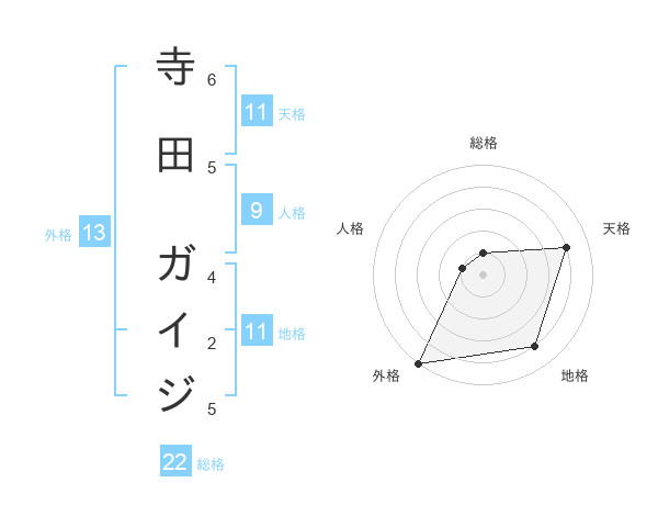 寺田 ガイジさんを姓名の画数から五運を鑑定