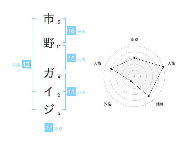 市野 ガイジさんの総格は27画の3点!