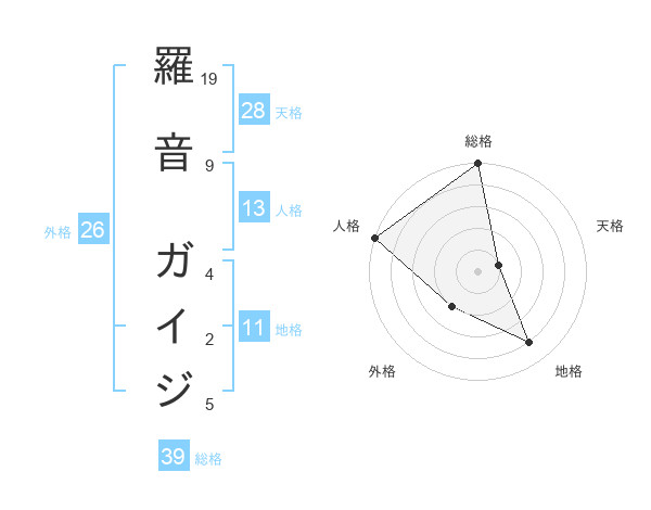羅音 ガイジさんの地格は11画の4点!