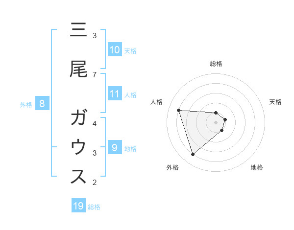 三尾 ガウスさんの総格は19画の1点!