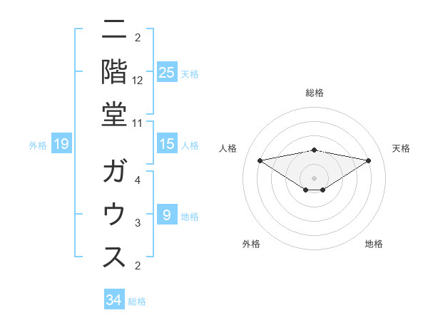 二階堂 ガウスさんを姓名の画数から五運を鑑定