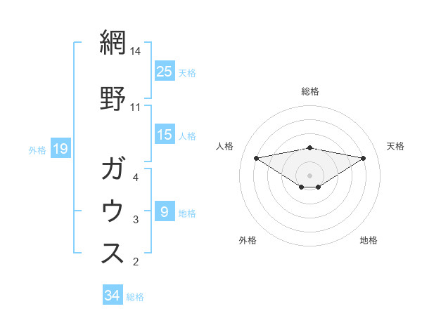 網野 ガウスさんの総格は34画の2点