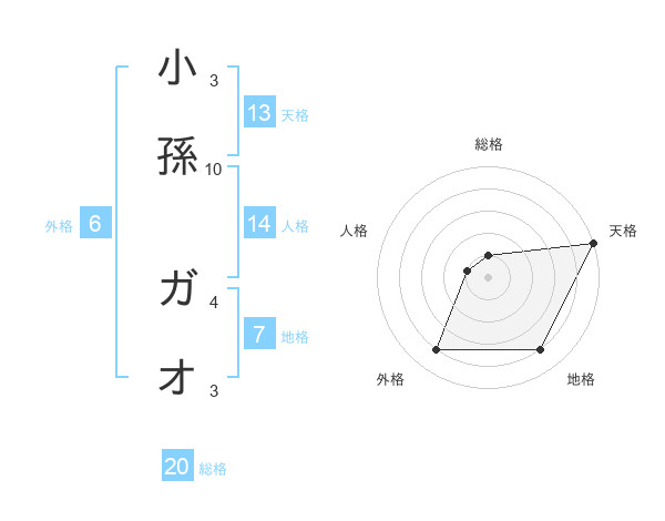 小孫 ガオさんを姓名の画数から五運を鑑定