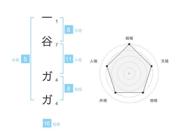 一谷 ガガさんの天格は8画の4点!