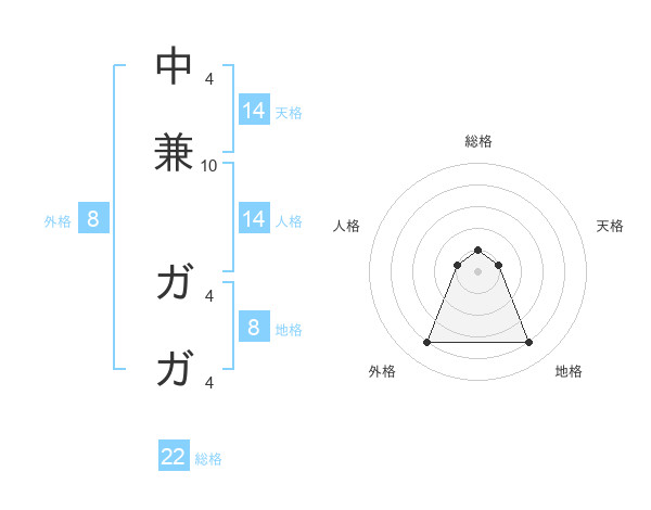 中兼 ガガさんの外格は8画の4点!