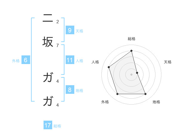 二坂 ガガさんの総格は17画の4点!