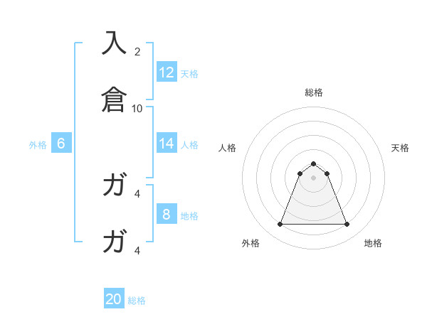 入倉 ガガさんの総格は20画の1点!