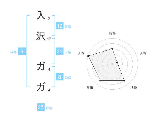 入沢 ガガさんの地格は8画の4点!