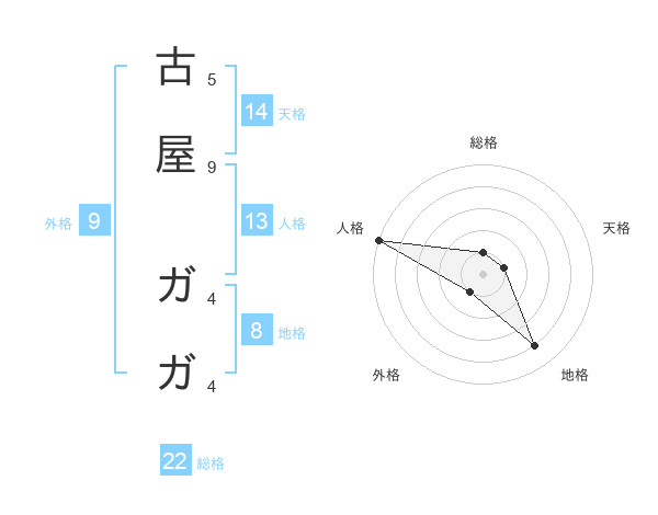 古屋 ガガさんの総格は22画の1点!