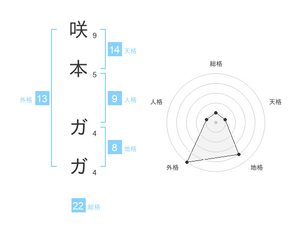 咲本 ガガさんの外格は13画の5点!
