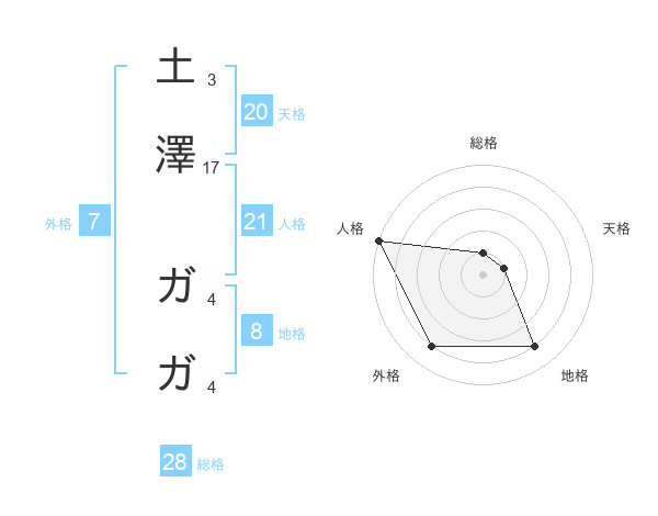 土澤 ガガさんの総格は28画の1点!