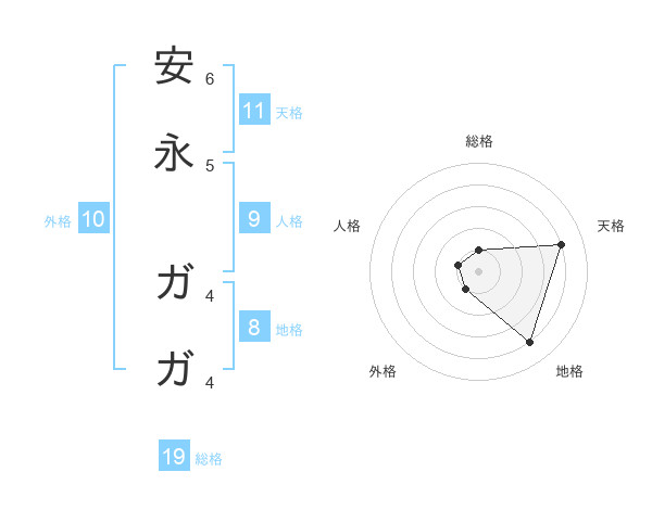 安永 ガガさんの天格は11画の4点!