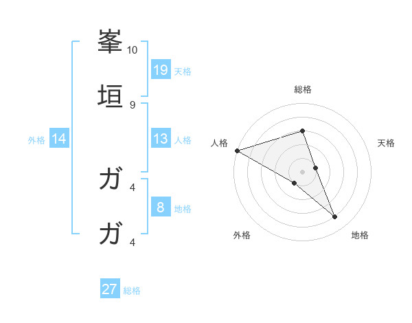峯垣 ガガさんの地格は8画の4点!