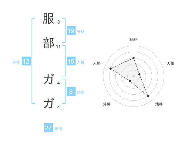 服部 ガガさんの総格は27画の3点!